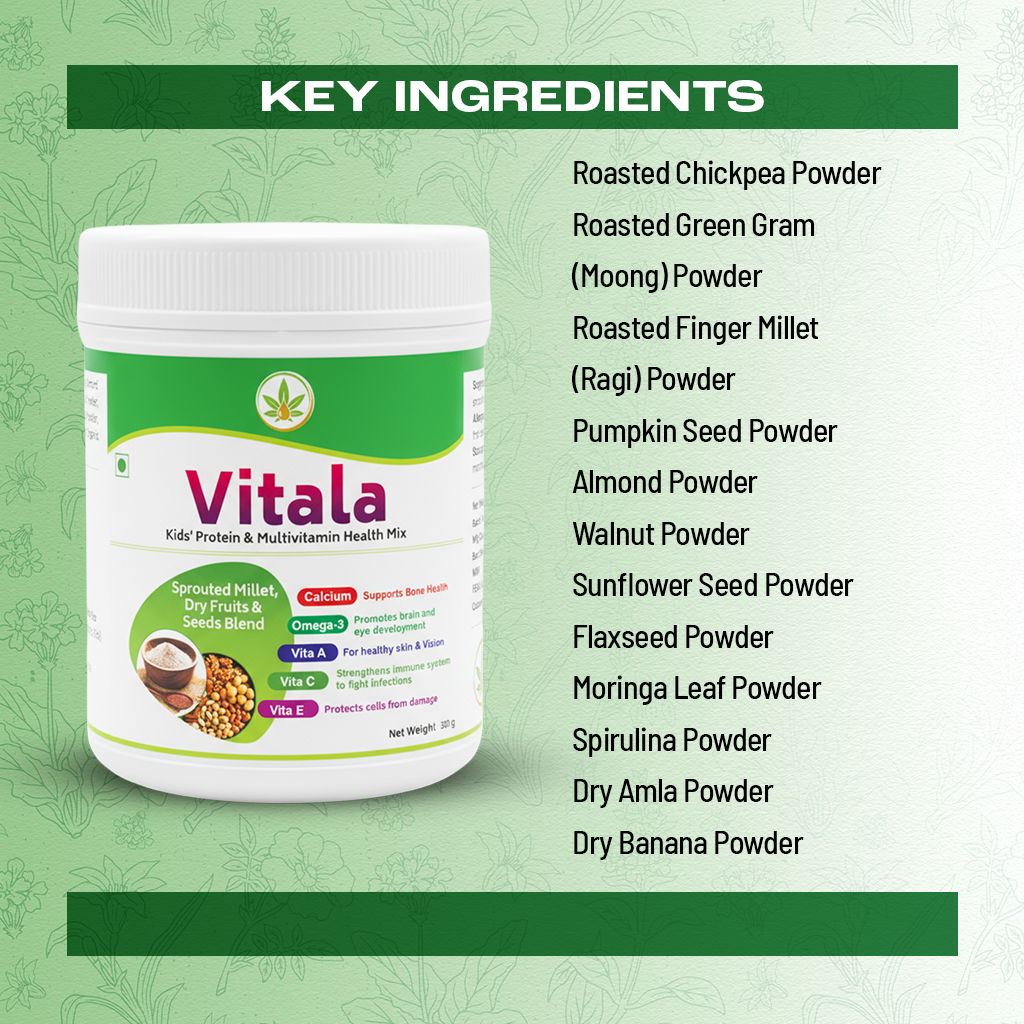 strong. Our Kids’ Protein + Multivitamin Powder is a carefully crafted natural blend of sprouted millets,